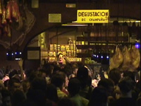 den obligatorischen oliven, schinken und alkohol einkäufen folgte erstmal ein besuch bei maoz falaffel - wie schon im februar gab es auch diesmal leider keine ganzen, eingelegten knoblauchzehen mehr. nach ausgiebigem chillen unter der kolumbussäule wollten uli und ich eigentlich in die xampaneria. diese idee hatten offensichtlich auch schon andere vor uns. da ein vorstossen zur bar in absehbarer zeit relativ unmöglich erschien, machten wir uns auf zu can pumuki. dies hatte zu diesem zeitpunkt allerdings noch lange nicht auf. so blieb uns nichts anderes übrig, als uns langsam in richtung margarita blue zu trinken. nach einem etwas zugigen café royale und einem weiteren besuch bei maoz dann ab in den entäuschenden pipa club. schließlich zu fortgeschrittener stunde gute nacht trunk im jazzmann mit altbekannten gesichtern |